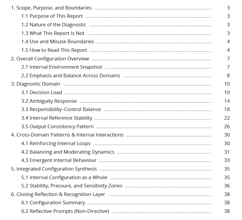 How your internal load tends to build and compound over timeHow your domains interact as one operating profile (not five separate scores)