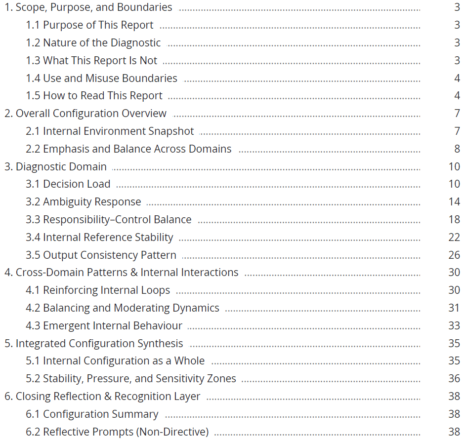 Why certain pressures repeat across roles, projects, or contextsA full breakdown of your results across all five diagnostic domains